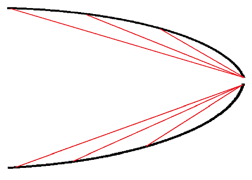 8. Helena#78: "where did we say that we were considering increasing functions ?" Here, where you agreed the curve under discussion is concave up. Here, where you agreed with 'increasing and accelerating', which I re-stated here. And here. This is now straightforward: a. If the temperature function over the period in question was increasing and linear, there would be no change in slope regardless of the interval used. b. If the temperature function was increasing and accelerating (which you agree means concave up), slopes starting in later periods would be greater (more positive) than slopes from periods starting earlier. Here is an illustration of this from first-year calculus: The slope of the line crossing the curve at x=1 is the smallest. Subsequent lines have increasing slope. Subsequent lines cross the curve at x>1. The slope of the last line shown (purple) is calculated from a very small interval around x=2 and is the largest. Work it backwards: the pattern of lines is sufficient to infer the shape of the curve. To insist otherwise at this point suggests you have an interest in prolonging this agonizing (and frankly uninteresting) back-and-forth.