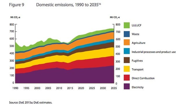 The Australian DoE document that Figure 9 was taken from for the Guardian Article (and that it incorrectly sub-labelled as 1990-2025) states the following related to Figure 9.