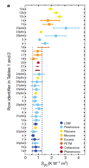 They look at several dozen sttudies, examining periods over many millions of years estimating CS.