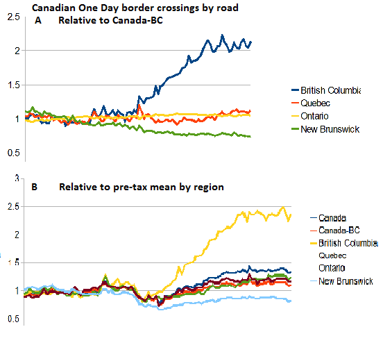 You should also read the working paper by Rivers and Schaufele that I linked to that discusses this issue at length. You may be interested to read there that they do not discount entirely the idea that cross-border gas fill-ups may have played a role in the consumption reductions. They wrote: