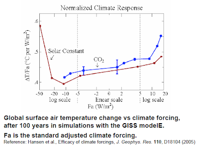 Here the y-axis is the feedback factor,f, typically associated with the equation 1/1-f. Climate sensitivity is proportional to 1/1-f. More specifically it is *equal to* CS=b/1-f where b is the response you'd get in a system that only had the Stefan-Boltzmann response operating. Thus, in the limit where we have no feedbacks, f=0 and the equation reduces to CS=b. That is, you'd get the response from just the Stefan-Boltzmann response.