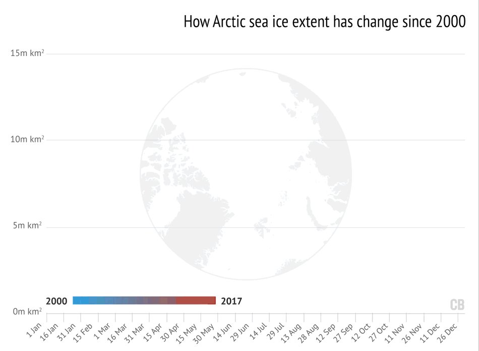 Click on the different years in our interactive graph below, to see how sea ice extent compares with 2017.