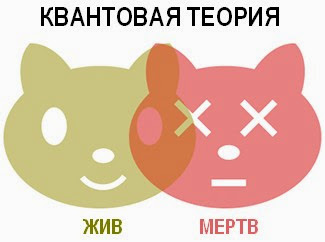 Чтобы проиллюстрировать насколько это странно, Шредингер представил радиоактивный материал размещенным в ящике, подключенном к счетчику Гейгера. В ящике также находился кот. Если радиоактивный материал распадается, автоматически разбивается бутылка яда, и кот умирает. Если распада не происходит, то кот остается в живых. Тогда согласно квантовой теории, пока мы не вскрыли ящик, кот и жив, и мертв одновременно. Кот Шредингера демонстрирует, что происходящее на микроскопическом уровне имеет мало смысла в применении к повседневности.